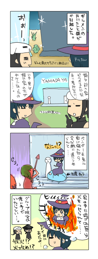 「変な敵が襲ってきて、家に火を放つんだよー><」